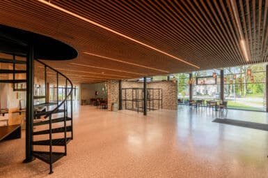 Kärla rahvamaja vestibüül on valgusküllane. Siin on võimalik korraldada koosolekuid, väiksemaid koosviibimisi, tootemüüki jmt. Ruumi saab ümber sättida vastavalt soovile.