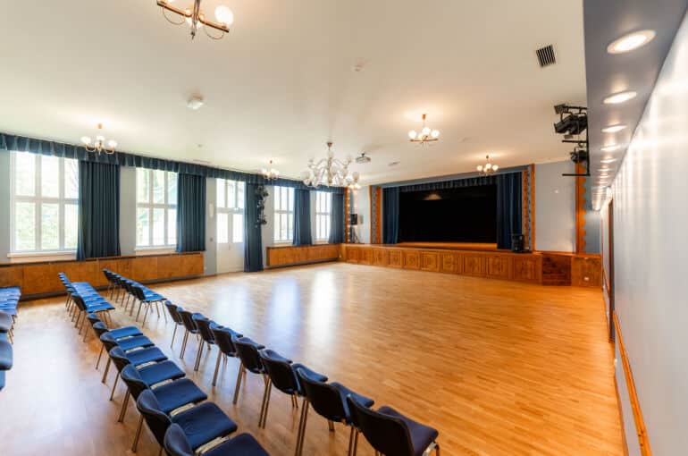 Kauni sisekujundusega Valjala rahvamaja on oma suuruselt paras kuni 200 inimesega ürtuste läbiviimiseks