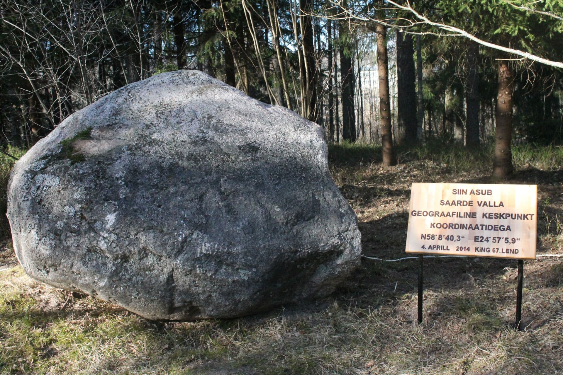 Saarde valla geograafilist keskpunkti tähistav kivi on pärit Soobiku talu pererahvalt. Kivi sai paika tänu hr Aldo Avastele ja Peep Paimrele. Tahvli, kuhu on märgitud Saarde valla täpsed geograafilise keskpunkti koordinaadid, valmistas Leho Paru. Idee pärineb kooli direktorilt hr Erli Aasametsalt. Ettevõtmise korraldas Kilingi-Nõmme Gümnaasiumi 67. lend.